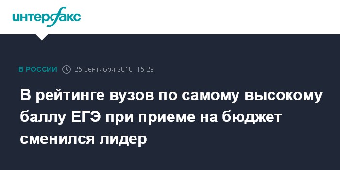 Москва. 25 сентября. INTERFAX.RU - В рейтинге вузов по самому высокому баллу ЕГЭ при приеме на бюджетное отделение изменился лидер, заявила вице-премьер РФ Татьяна Голикова.