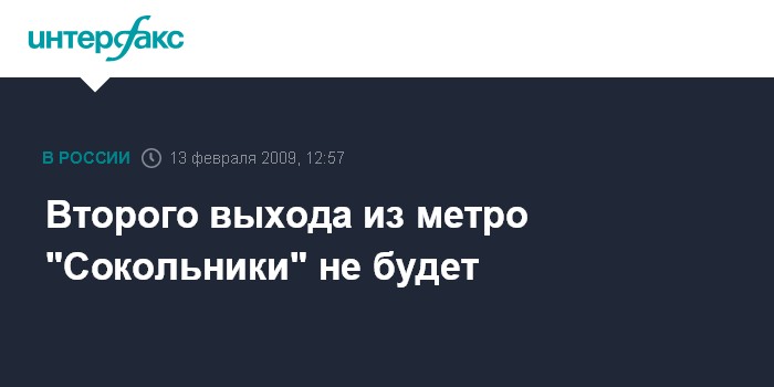 Второго выхода из метро "Сокольники" не будет