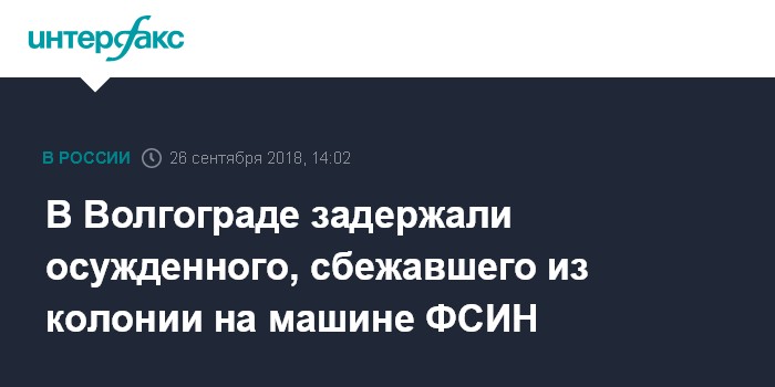 Москва. 26 сентября. INTERFAX.RU - Заключенный одной из колоний Волгограда, который 23 сентября сбежал из-под стражи на служебном автомобиле ФСИН, задержан. Об этом сообщает в среду пресс-служба ГУ МВД России по Волгоградской области.