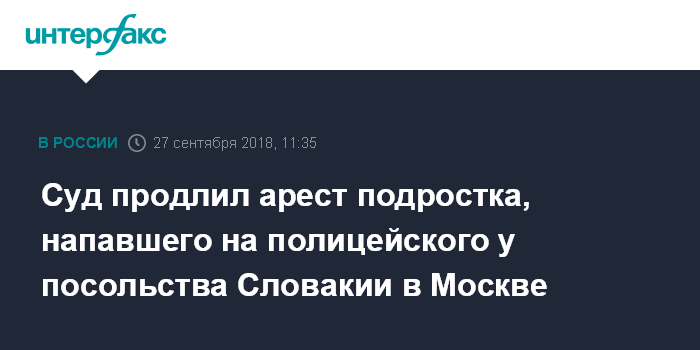 Суд продлил арест подростка, напавшего на полицейского у посольства Словакии в Москве