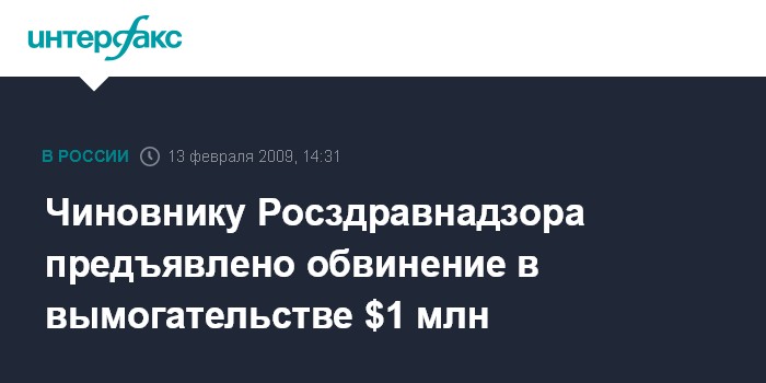 Москва. 13 февраля. INTERFAX.RU - Высокопоставленный чиновник Росздравнадзора предстанет перед судом по обвинению в мошенническом вымогательстве $1 млн у своего коллеги.