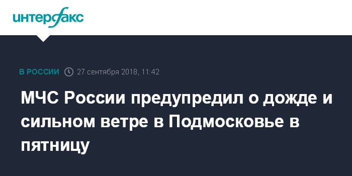 Москва. 27 сентября. INTERFAX.RU - Дождь с порывами ветра до 20 метров в секунду ожидается в пятницу в Подмосковье, сообщает МЧС РФ по Московской области.