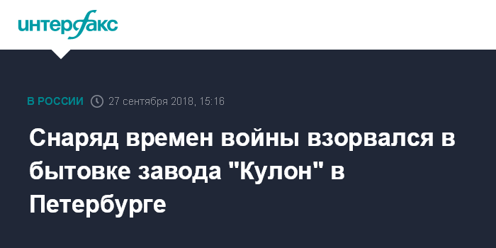 Снаряд времен войны взорвался в бытовке завода "Кулон" в Петербурге