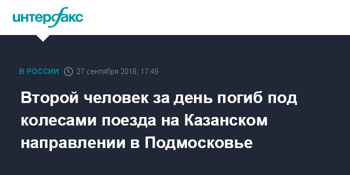 Москва. 27 сентября. INTERFAX.RU - Второй человек за сутки погиб под колесами поезда в Подмосковье, сообщили "Интерфаксу" в пресс-службе транспортного управления МВД по Центральному федеральному округу.