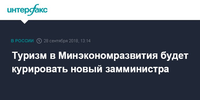 Москва. 28 сентября. INTERFAX.RU - Курировать туристическую отрасль в Минэкономразвития будет заместитель министра, эта должность пока вакантна.