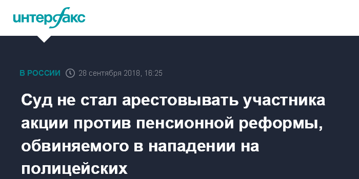 Суд не стал арестовывать участника акции против пенсионной реформы, обвиняемого в нападении на полицейских