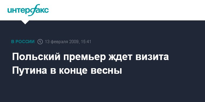 Варшава. 13 февраля. ИНТЕРФАКС - ЦЕНТРАЛЬНАЯ ЕВРОПА - Визит российского премьера Владимира Путина в Польшу может состояться в конце весны 2009 г., считает польский премьер Дональд Туск.
