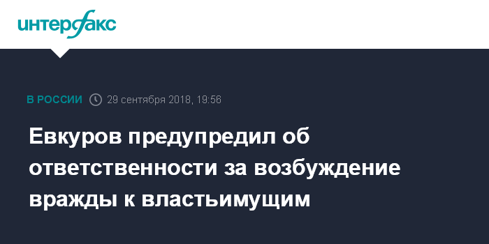 Евкуров предупредил об ответственности за возбуждение вражды к властьимущим