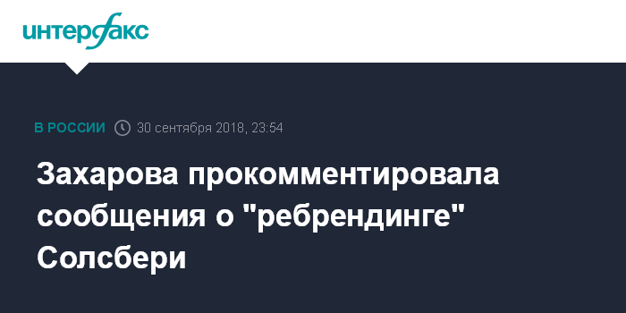 Москва. 30 сентября. INTERFAX.RU - Официальный представитель МИД РФ Мария Захарова прокомментировала сообщения СМИ об обращении властей британского Солсбери к команде специалистов по "ребрендингу" с просьбой помочь создать новый образ города после истории с отравлением там экс-сотрудника ГРУ Сергея Скрипаля и его дочери Юлии.
