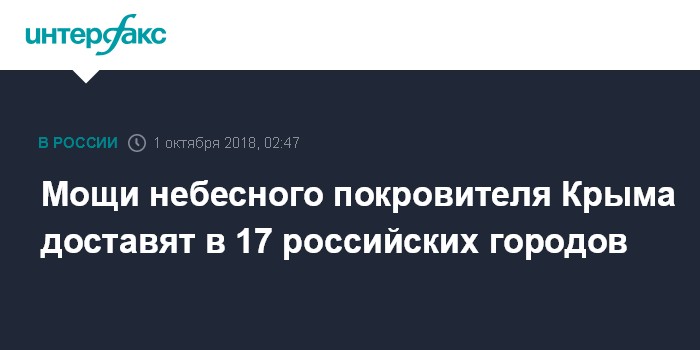 Мощи небесного покровителя Крыма доставят в 17 российских городов