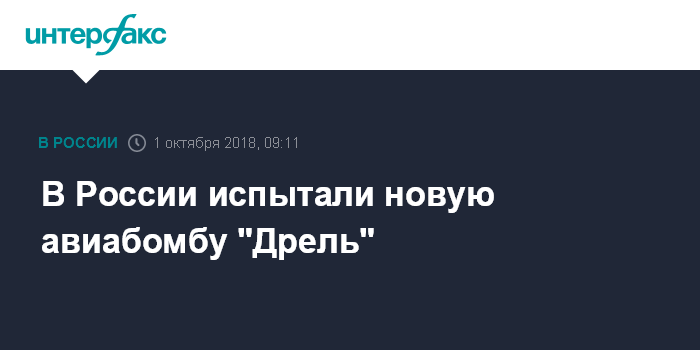 Москва. 1 октября. INTERFAX.RU - Новейшая авиабомба "Дрель" успешно подтверждает заявленные характеристики в ходе госиспытаний, сообщил "Интерфаксу" заместитель гендиректора концерна "Техмаш" (входит в "Ростех") Александр Кочкин.