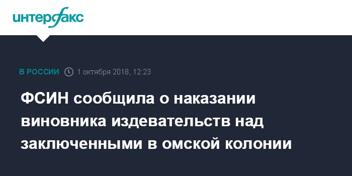 Москва. 1 октября. INTERFAX.RU - Видеозаписи издевательств над заключенными в омской колонии №7, попавшие накануне в СМИ, относятся к 2015-2016 годам, виновный в этом сотрудник ИК уже осужден, сообщила пресс-служба управления федеральной службы исполнения наказаний по Омской области.