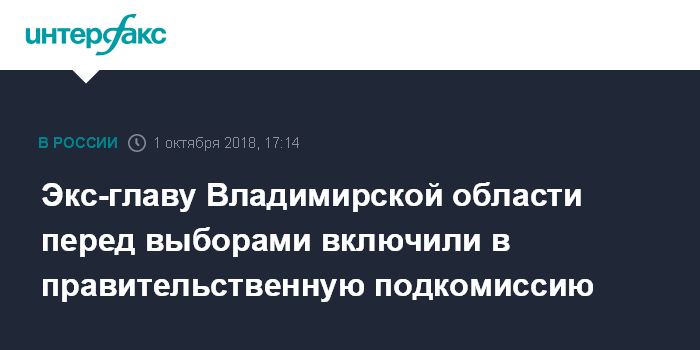 Экс-главу Владимирской области перед выборами включили в правительственную подкомиссию