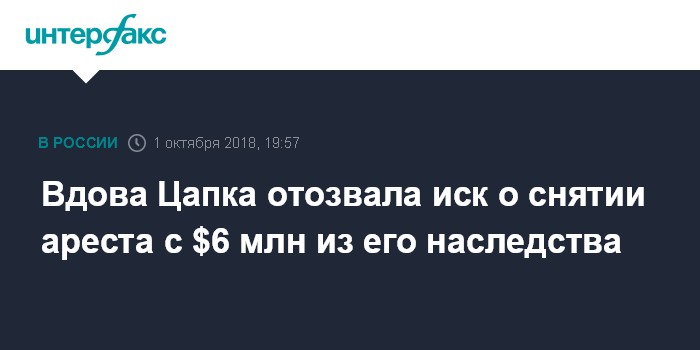 Вдова Цапка отозвала иск о снятии ареста с $6 млн из его наследства