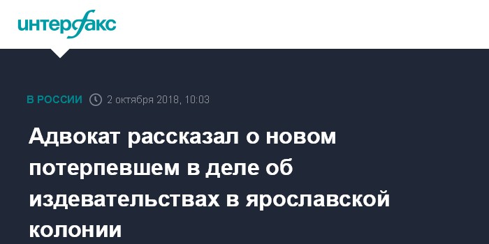 Москва. 2 октября. INTERFAX.RU - Число потерпевших по делу о превышении полномочий сотрудниками ярославских колоний может возрасти, заявил адвокат "Общественного вердикта" Эльдар Лузин.