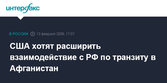 "Мы уже работаем вместе по вопросу транзита некоторых видов невоенного оборудования. Но мы, безусловно, хотели бы расширить это сотрудничество любым способом, который бы отвечал интересам наших двух стран", - сказал Бернс в интервью "Интерфаксу", отвечая на вопрос о том, планируют ли США обсуждать с Москвой возможность транзита военных грузов для своих сил в Афганистане.
