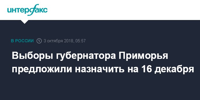 В свою очередь председатель Заксобрания Приморья Александр Ролик сообщил журналистам, что дата повторных выборов губернатора Приморья предопределена и отметил, что это будет 16 декабря.