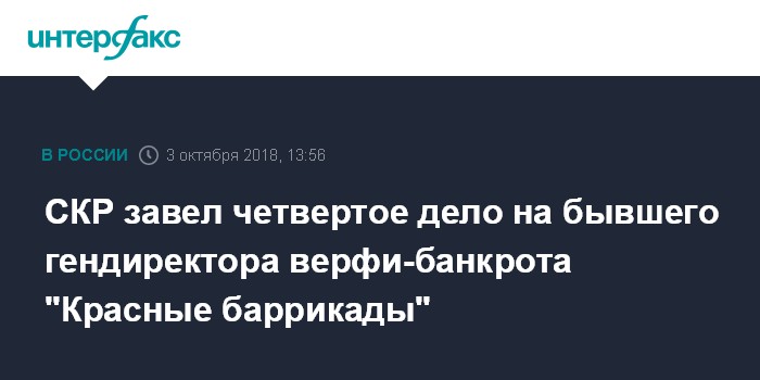 СКР завел четвертое дело на бывшего гендиректора верфи-банкрота "Красные баррикады"