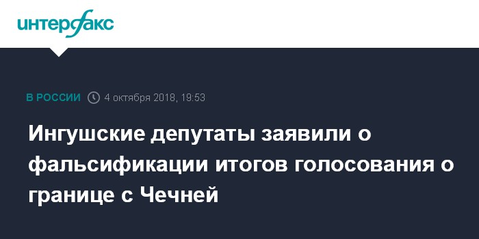Москва. 4 октября. INTERFAX.RU - Более десяти депутатов Народного собрания Ингушетии заявили о фальсификациях при голосовании по республиканскому законопроекту об утверждении соглашения об установлении границы между Ингушетией и Чечней.