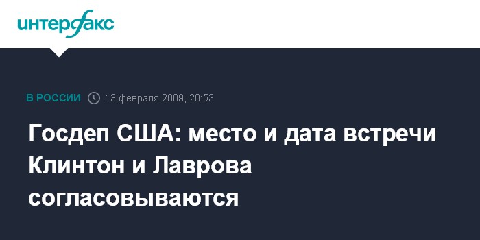 Вашингтон. 13 февраля. INTERFAX.RU - Сроки и место проведения встречи министра иностранных дел России Сергея Лаврова и госсекретаря США Хиллари Клинтон сейчас уточняются в рабочем порядке, заявил исполняющий обязанности пресс-секретаря американского госдепартамента США Гордон Дугуд.
