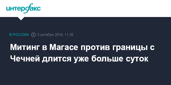 Москва. 5 октября. INTERFAX.RU - В столице Ингушетии Магасе продолжается не согласованная с властями акция протеста против утверждения соглашения об установлении административной границы с Чеченской республикой, сообщили в пятницу "Интерфаксу" информированный источник.