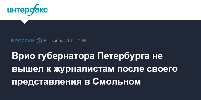 Врио губернатора Петербурга не вышел к журналистам после своего представления в Смольном