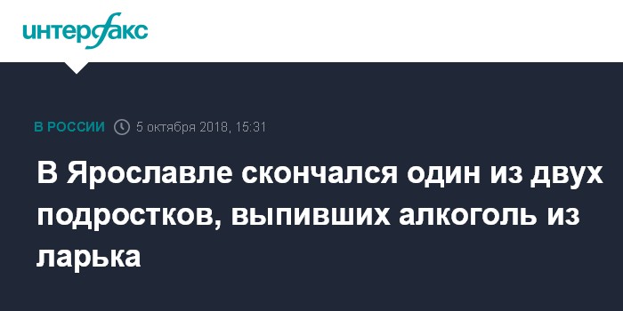 Москва. 5 октября. INTERFAX.RU - Ярославские следователи возбудили уголовное дело о смерти 12-летнего подростка после употребления алкоголя, сообщили "Интерфаксу" в СУ СКР по региону.