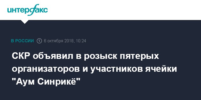 СКР объявил в розыск пятерых организаторов и участников ячейки "Аум Синрикё"