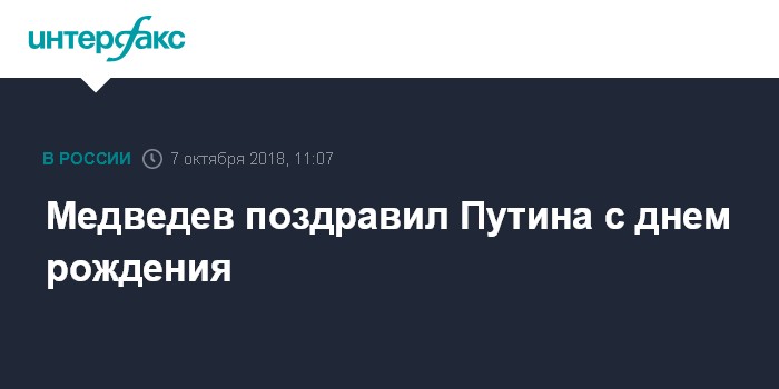 Москва. 7 октября. INTERFAX.RU - Премьер-министр РФ Дмитрий Медведев поздравил в телефонном разговоре президента России Владимира Путина с днем рождения.