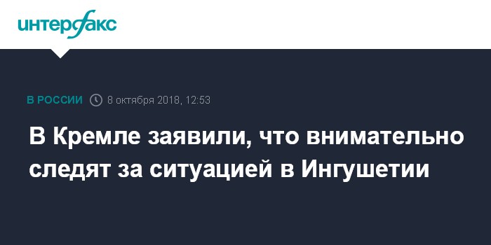 Москва. 8 октября. INTERFAX.RU - В Кремле внимательно наблюдают за происходящим в Ингушетии, заявил пресс-секретарь президента РФ Дмитрий Песков.