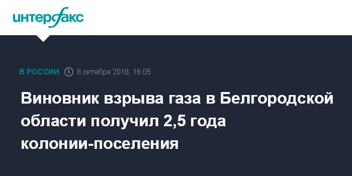 Виновник взрыва газа в Белгородской области получил 2,5 года колонии-поселения