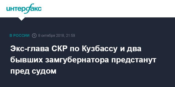 Москва. 8 октября. INTERFAX.RU - Следственный комитет России довел до суда дело против двух бывших заместителей губернатора Кемеровской области, обвиняемых в попытке совместно с главой областного управления СК завладеть угледобывающим предприятием "Разрез "Инской", сообщила официальный представитель ведомства Светлана Петренко.