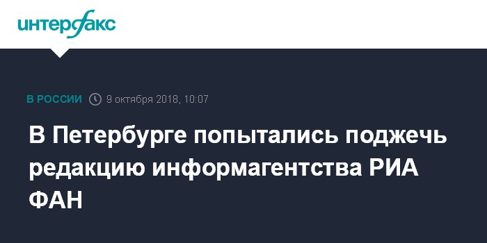 В Петербурге попытались поджечь редакцию информагентства РИА ФАН