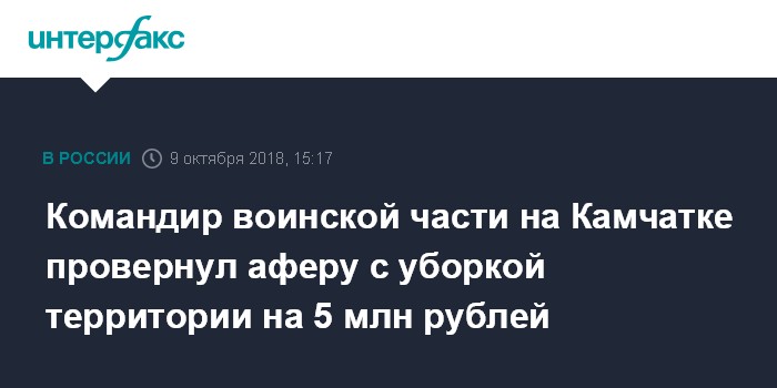Командир воинской части на Камчатке провернул аферу с уборкой территории на 5 млн рублей