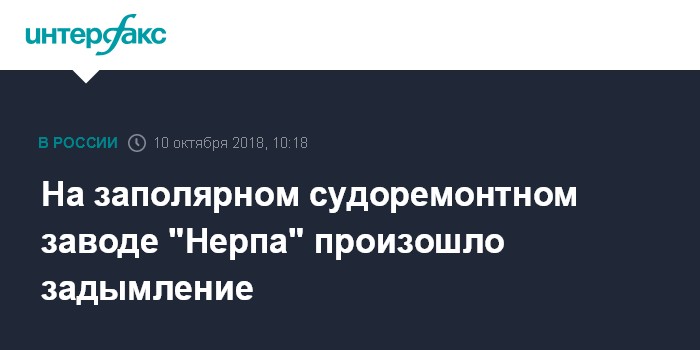 Москва. 10 октября. INTERFAX.RU - На судоремонтном заводе "Нерпа" (СРЗ "Нерпа", филиал АО "Центр судоремонта "Звездочка", ЗАТО Александровск) в Мурманской области в среду утром возникло задымление, сообщили "Интерфаксу" на заводе.