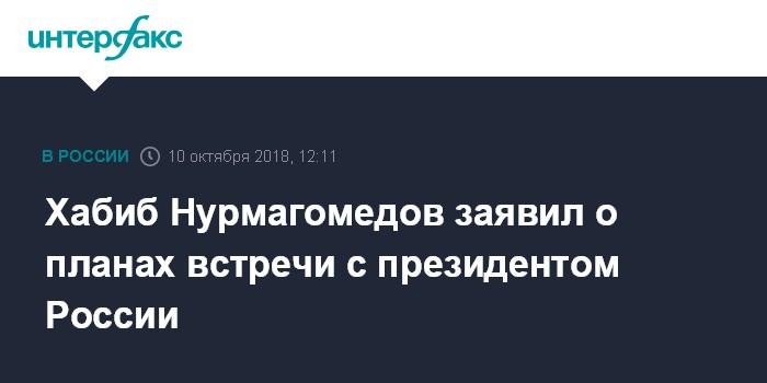 Москва. 10 октября. INTERFAX.RU - Боец смешанных единоборств Хабиб Нурмагомедов заявил, что планирует в среду встретиться с президентом РФ Владимиром Путиным.