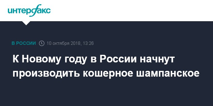 "С его появлением можно будет сказать, что в России налажено производство полной линейки кошерного продовольствия всех категорий. Все уже есть, кроме шампанского к празднику", - заявил раввин Верзуб "Интерфаксу" в среду.