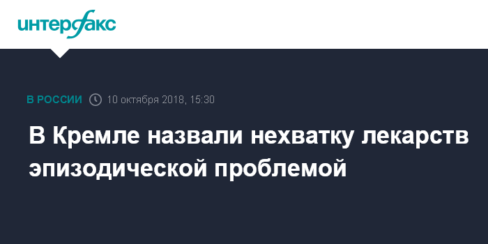 В Кремле назвали нехватку лекарств эпизодической проблемой