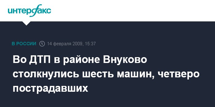 Москва. 14 февраля. INTERFAX.RU - В субботу во подмосковном Внуково произошло дорожно-транспортное происшествие, в котором пострадали четыре человека, сообщил "Интерфаксу" источник в правоохранительных органах столицы.