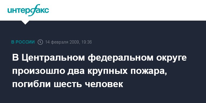 Москва. 14 февраля. ИНТЕРФАКС - Два крупных пожара с человеческими жертвами произошли в субботу в Центральном федеральном округе, сообщили "Интерфаксу" в пресс-службе Центрального регионального центра МЧС.