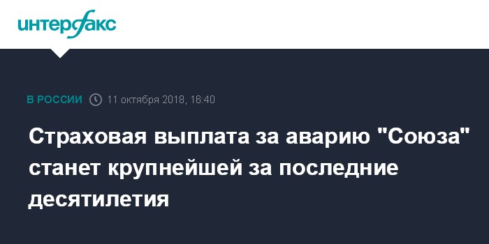 Москва. 11 октября. INTERFAX.RU - Страховая компания "Согласие" приступила к рассмотрению обстоятельств аварии при запуске "Союз МС-10"; выплата по этому случаю может стать крупнейшей за несколько десятилетий, заявляют в компании.