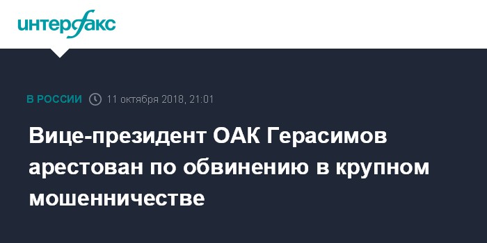 Вице-президент ОАК Герасимов арестован по обвинению в крупном мошенничестве