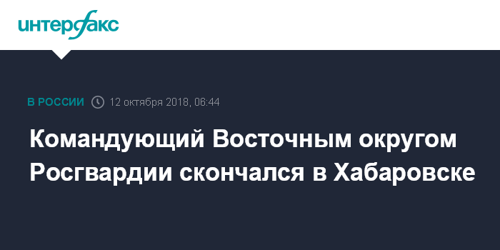Командующий Восточным округом Росгвардии скончался в Хабаровске