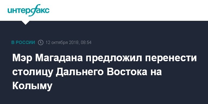 Москва. 12 октября. INTERFAX.RU - Мэр Магадана Юрий Гришан решил вмешаться в заочный спор губернатора Хабаровского края Сергея Фургала и врио главы Приморья Олега Кожемяко о столице ДФО и выступил со своим предложением - сделать главным городом региона Магадан.