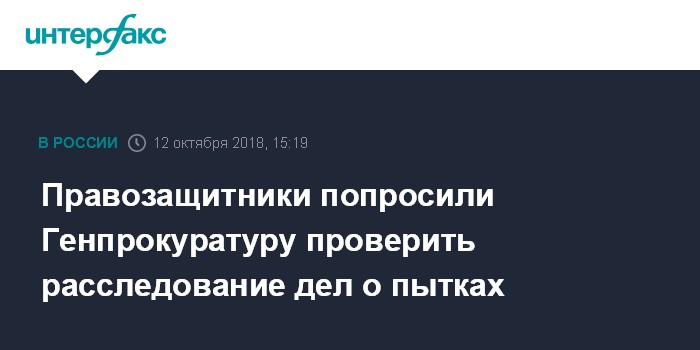 Москва. 12 октября. INTERFAX.RU - Фонд "Общественный вердикт" обратился в Генпрокуратуру РФ с просьбой выяснить, почему не расследовались дела о пытках в колонии и следственных изоляторах.