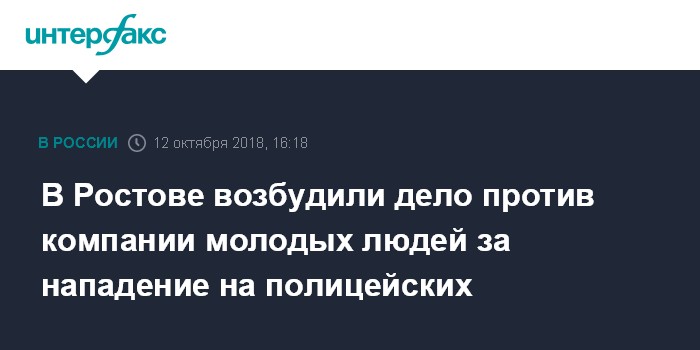 Москва. 12 октября. INTERFAX.RU - Три девушки и два молодых человека стали фигурантами уголовного дела после драки с сотрудниками полиции в центре Ростова-на-Дону. Об этом сообщили агентству "Интерфакс" в пресс-службе следственного управления СКР по Ростовской области.