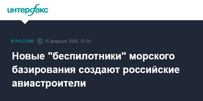 Москва. 15 февраля. INTERFAX.RU - В России создаются беспилотные аппараты, оснащенные радиолокационными станциями кругового обзора для оснащения ими морских кораблей, сообщил "Интерфаксу-АВН" директор программы по комплексам с беспилотными вертолетами компании "Вертолеты России" Геннадий Бебешко.