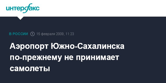 Южно-Сахалинск. 15 февраля. INTERFAX.RU - Аэропорт Южно-Сахалинска закрыт в воскресенье до 20:00 местного времени (до 13:00 мск) в связи с продолжающейся расчисткой взлетно-посадочной полосы.