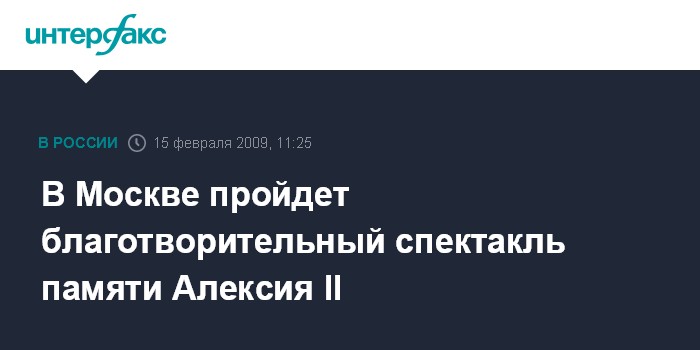 В Москве пройдет благотворительный спектакль памяти Алексия II
