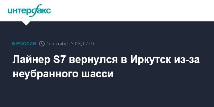 Лайнер S7 вернулся в Иркутск из-за неубранного шасси